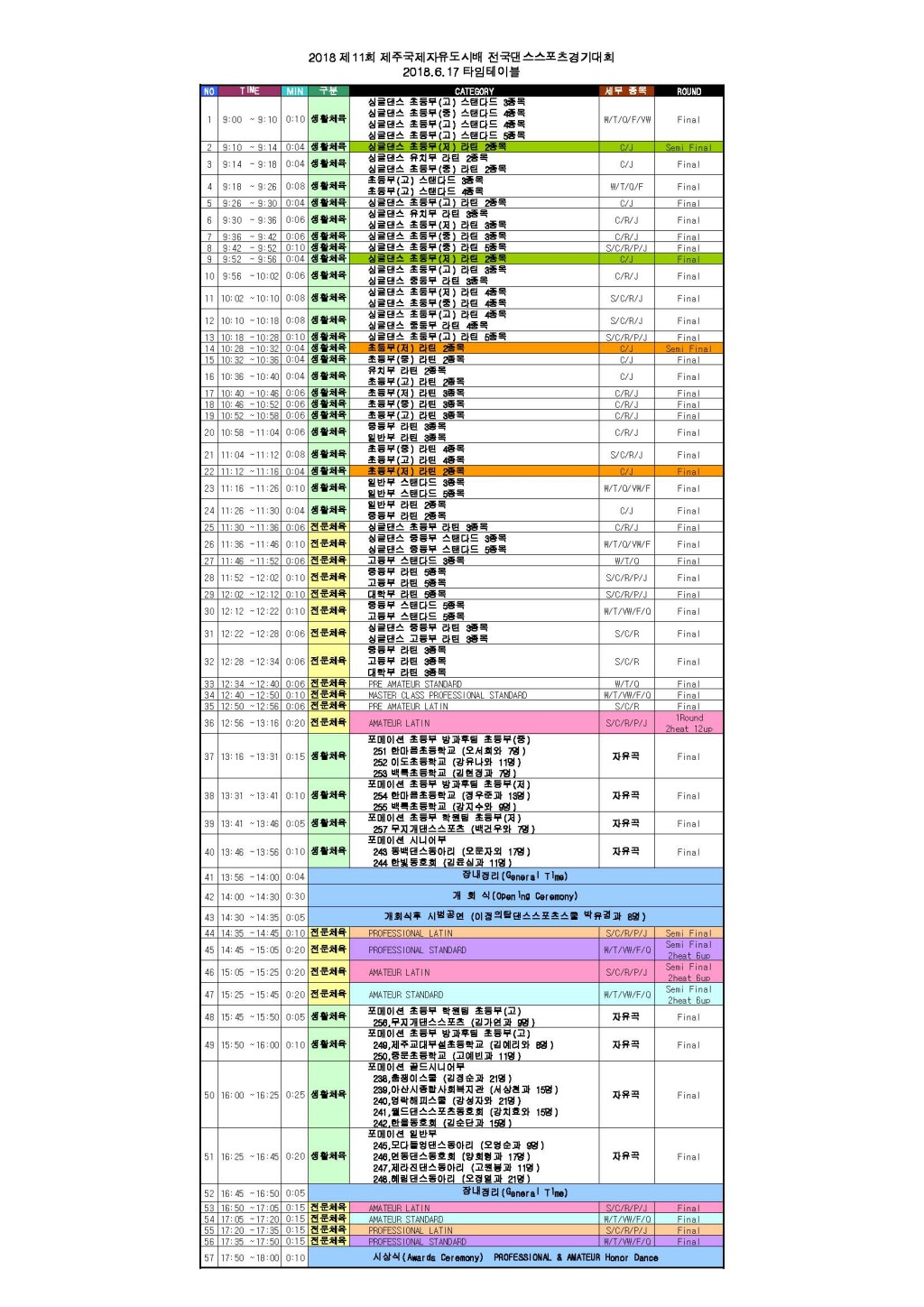 [타임테이블] 2018 광양 선샤인배 대회