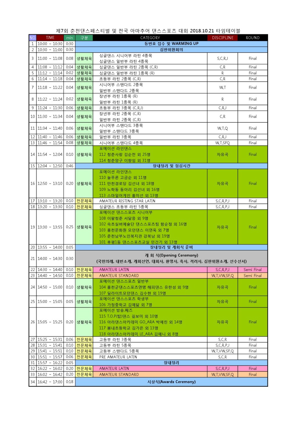 [타임테이블] 제7회 춘천댄스페스티벌 전국 댄스스포츠 대회