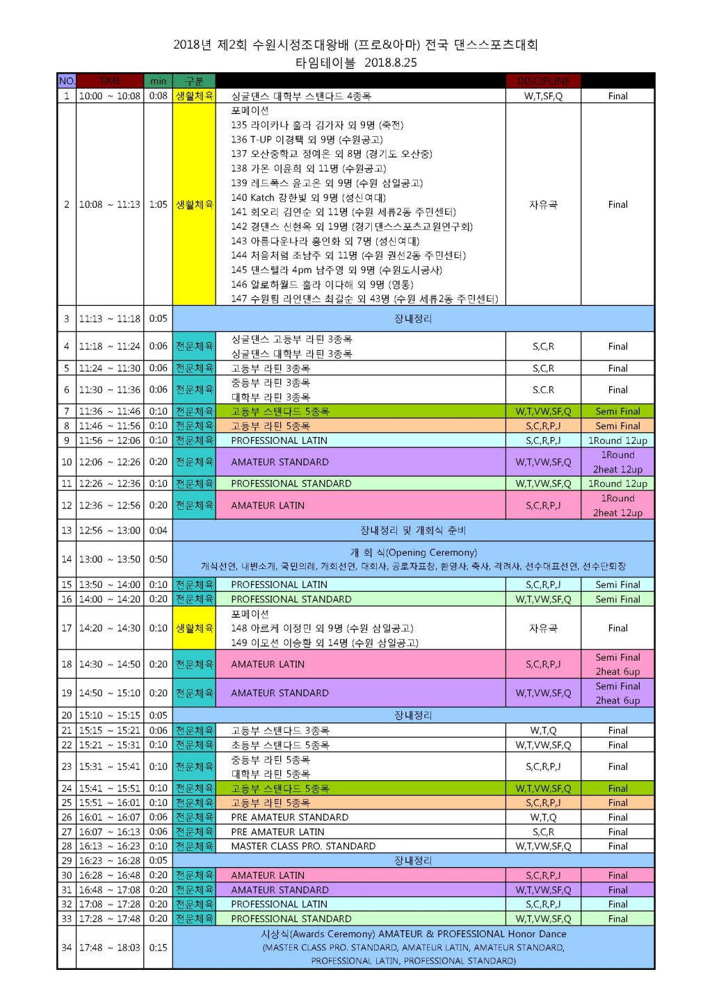 [타임테이블] 제2회 수원시 정조대왕배 대회(08.25)
