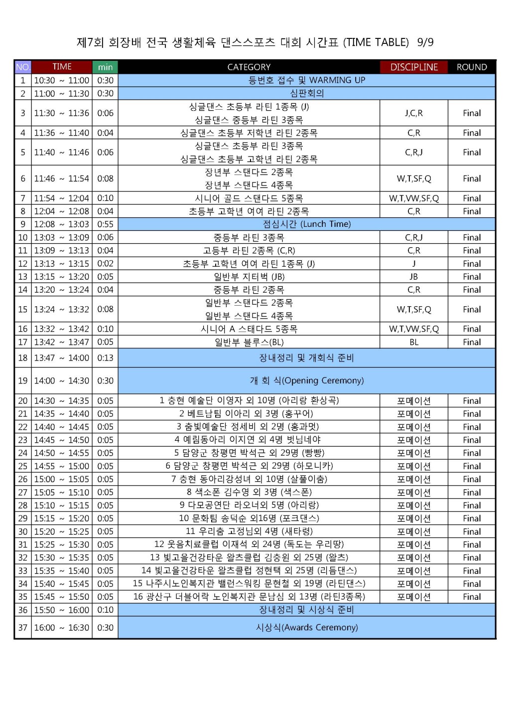 [타임테이블] 제7회 회장배 생활체육 대회