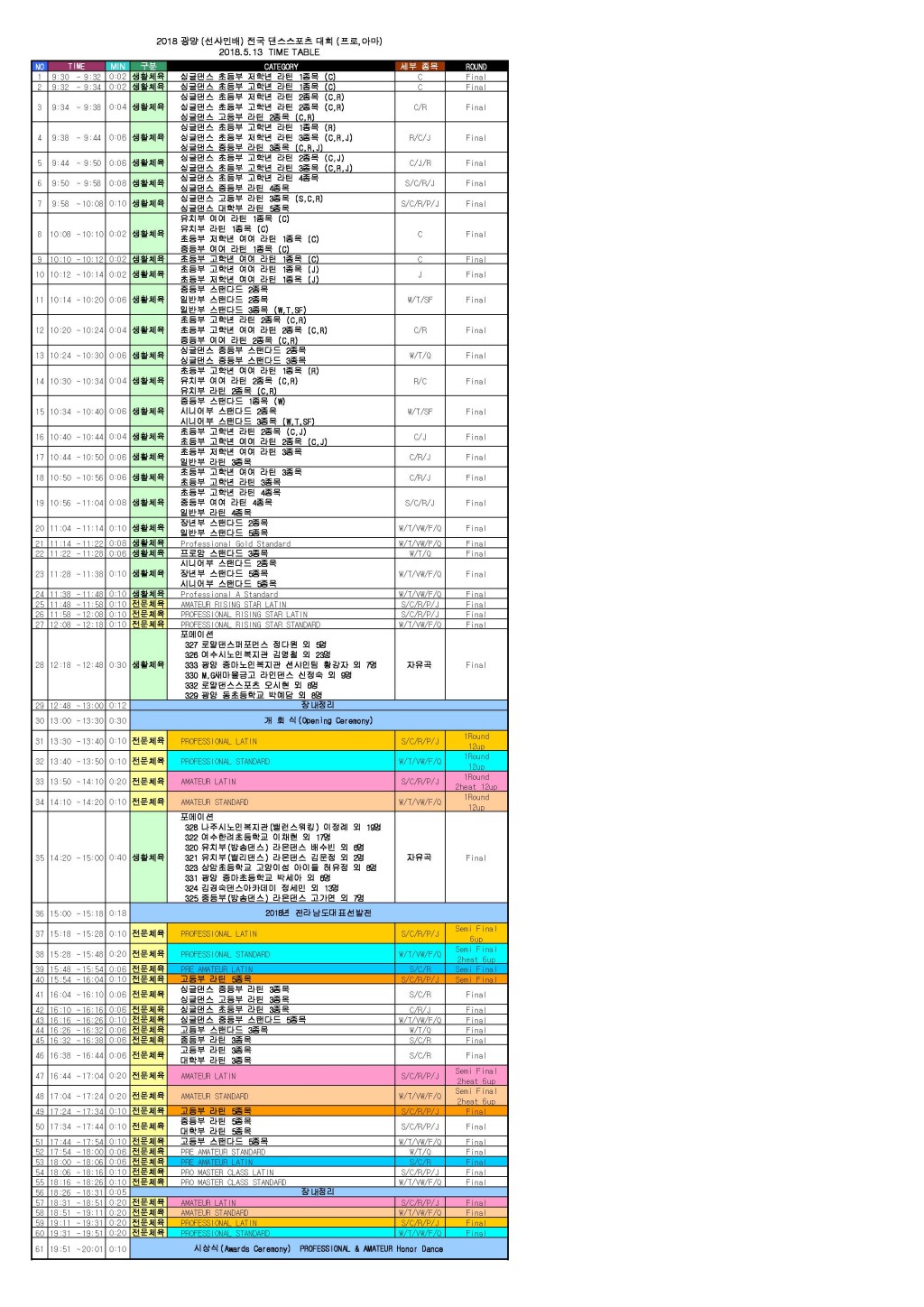 [타임테이블] 2018 광양 선샤인배 대회