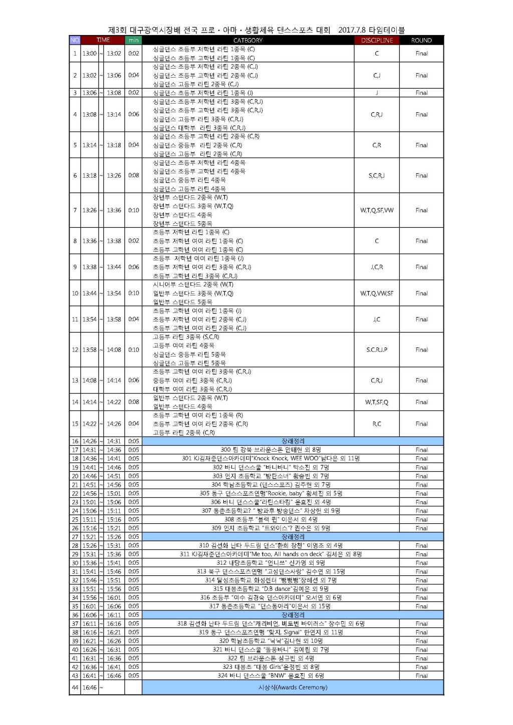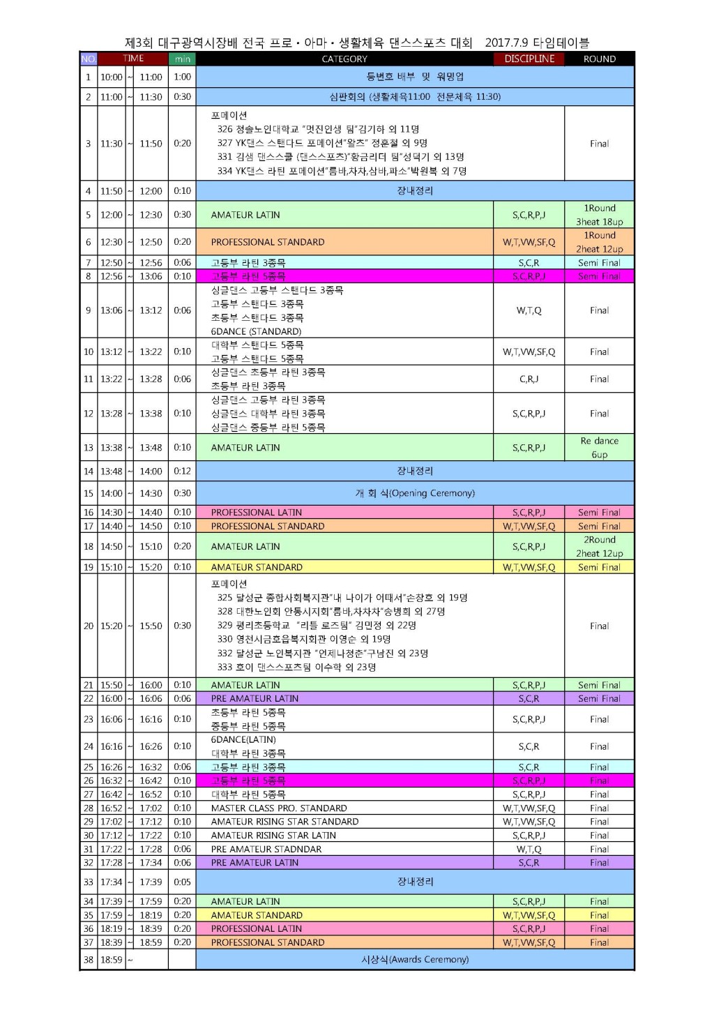 [타임테이블] 제13회 청주직지배 국제 댄스스포츠 대회