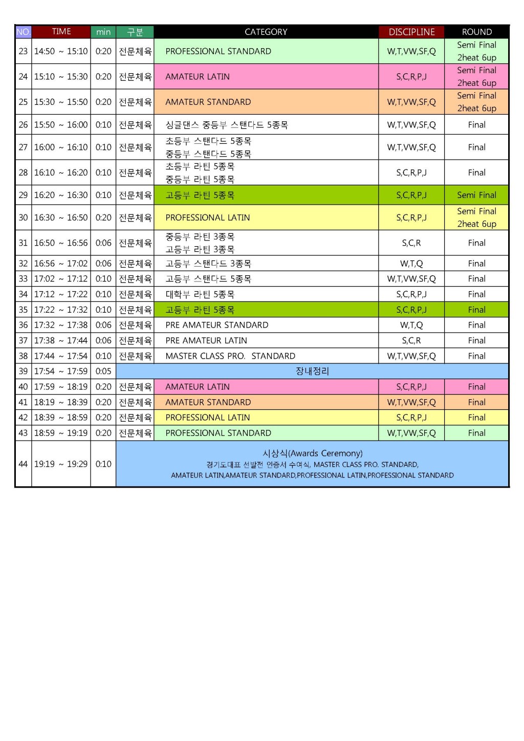 [타임테이블] 제9회 대구광역시장배 전국 댄스스포츠 대회(수정6.13)